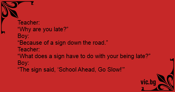 “The sign said, ‘School Ahead, Go Slow!’”