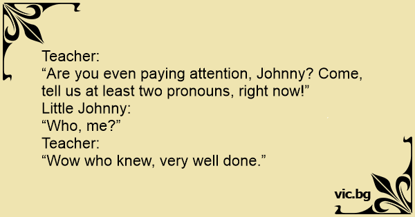 “Are you even paying attention, Johnny? Come, tell us at least two pronouns, right now!”