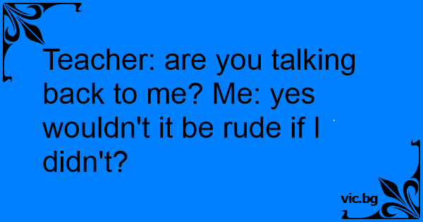 Teacher: are you talking back to me? Me: yes wouldn't it be rude if I didn't?