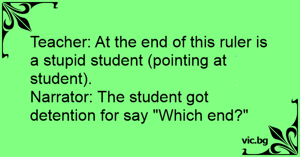 Teacher: At the end of this ruler is a sтuрid student (pointing at student).