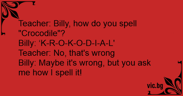 Billy: Maybe it's wrong, but you ask me how I spell it!