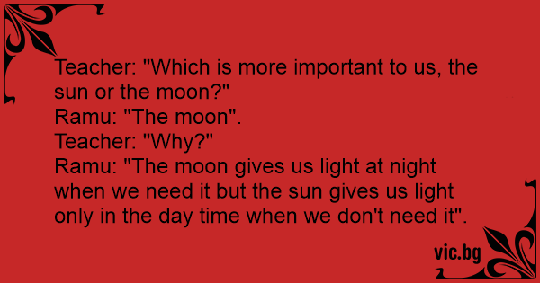Teacher: "Which is more important to us, the sun or the moon?"