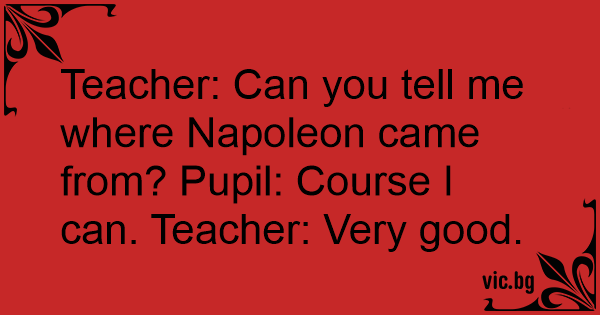Teacher: Can you tell me where Napoleon came from? Pupil: Course I can. Teacher: Very good.