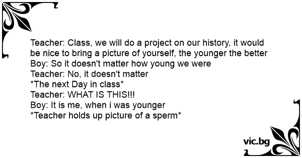 Teacher: Class, we will do a project on our history, it would be nice to bring a picture of yourself, the younger the better