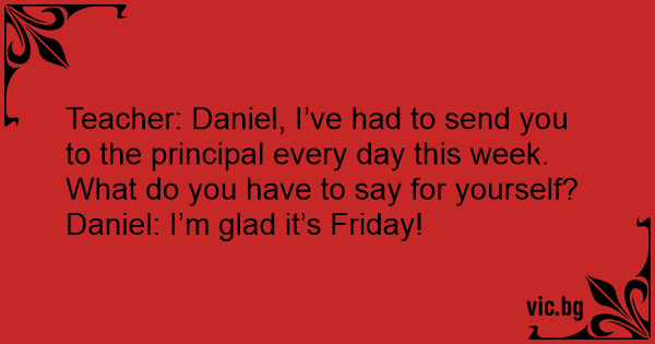 Teacher: Daniel, I’ve had to send you to the principal every day this week.