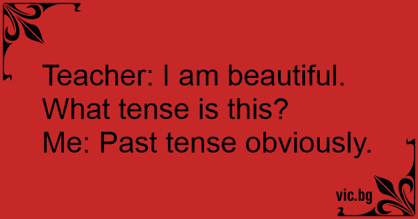 An old teacher asked her student, "If I say, 'I am beautiful,' which tense is that?" The student replied, "It is obviously past."
