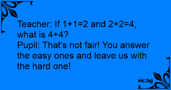 Pupil: That's not fair! You answer the easy ones and leave us with the hard one!