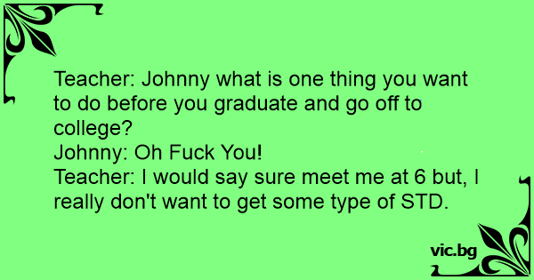 Teacher: Johnny what is one thing you want to do before you graduate and go off to college?