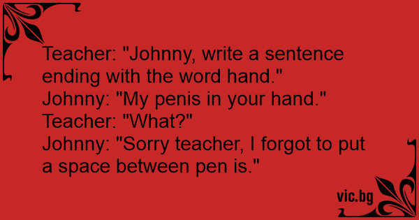 Teacher: "Johnny, write a sentence ending with the word hand."
