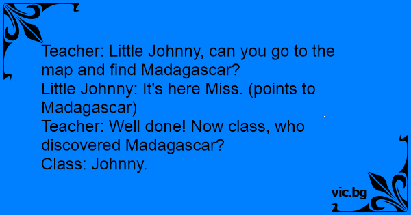 Little Johnny: It's here Miss. (points to Madagascar)