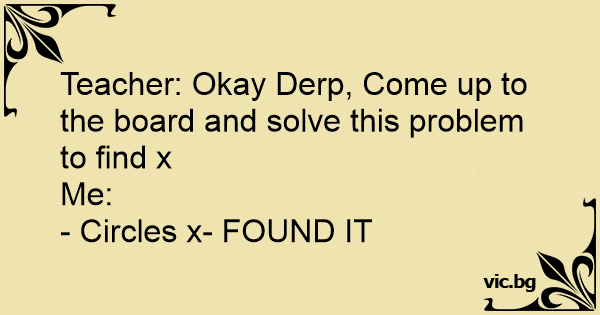 Teacher: Okay Derp, Come up to the board and solve this problem to find x