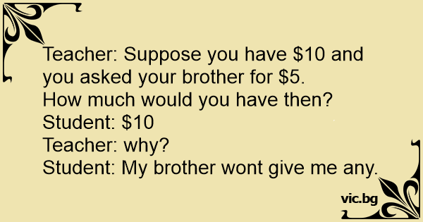 Teacher: Suppose you have $10 and you asked your brother for $5.