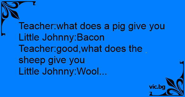 Teacher:what does a pig give you Little Johnny:Bacon Teacher:good,what does the sheep give you Little Johnny:Wool Teacher:What does the fат соw give you Little Johnny:homework and says leave motherf*cker