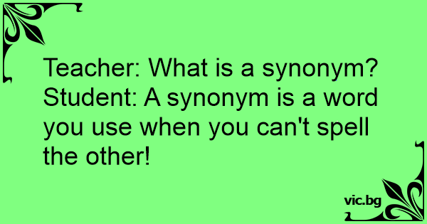 - Какво е синоним? - Това е дума, която използваме, когато не знаем как се пише първата