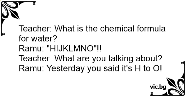 Teacher: What is the chemical formula for water?