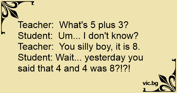 Student: Wait... yesterday you said that 4 and 4 was 8?!?!