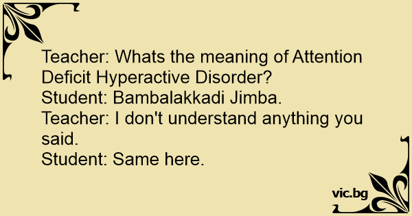 Teacher: Whats the meaning of Attention Deficit Hyperactive Disorder?