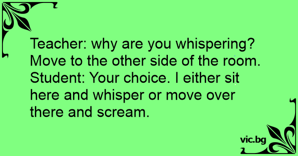 Teacher: why are you whispering? Move to the other side of the room.