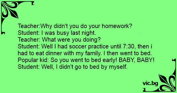 Student: Well, I didn't go to bed by myself.