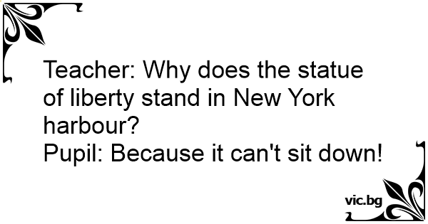 Teacher: Why does the statue of liberty stand in New York harbour?