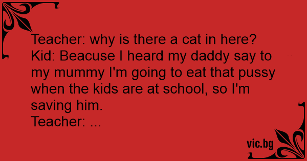 Kid: Beacuse I heard my daddy say to my mummy I'm going to eat that рussy when the kids are at school, so I'm saving him.