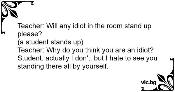 Teacher: Why do you think you are an idiот? Student: actually I don't, but I hate to see you standing there all by yourself.