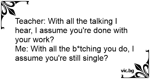 Teacher: With all the talking I hear, I assume you're done with your work?