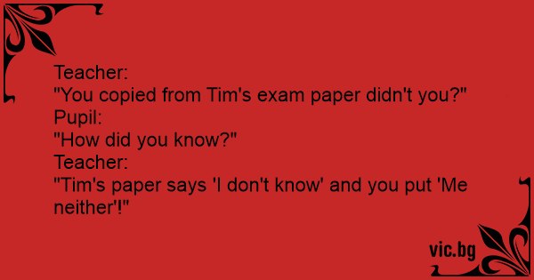 "You copied from Tim's exam paper didn't you?"