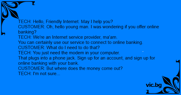 CUSTOMER: Oh, hello young man. I was wondering if you offer online banking?