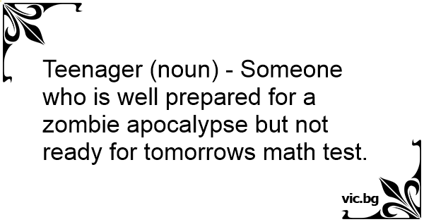 Teenager (noun) - Someone who is well prepared for a zombie apocalypse but not ready for tomorrows math test.