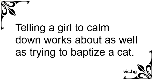 Telling a girl to calm down works about as well as trying to baptize a cat.
