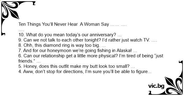 Ten Things You’ll Never Hear A Woman Say …… ….