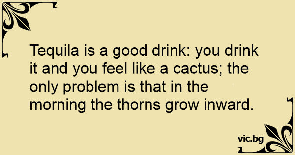 Tequila is a good drink: you drink it and you feel like a cactus; the only problem is that in the morning the thorns grow inward.