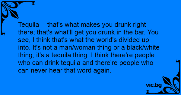 Tequila -- that's what makes you drunк right there; that's what'll get you drunк in the bar. You see, I think that's what the world's divided up into. It's not a man/woman thing or a black/white thing, it's a tequila thing. I think there're people who can drink tequila and there're people who can never hear that word again.
