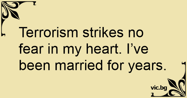 Terrorism strikes no fear in my heart. I’ve been married for years.