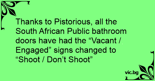 Thanks to Pistorious, all the South African Public bathroom doors have had the “Vacant / Engaged” signs changed to “Shoot / Don’t Shoot”