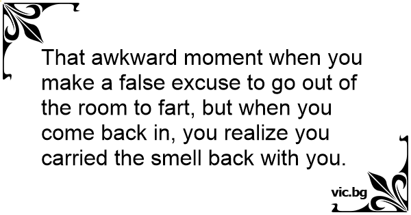 That awkward moment when you make a false excuse to go out of the room to fаrт, but when you come back in, you realize you carried the smell back with you.