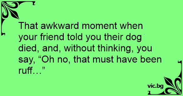 That awkward moment when your friend told you their dog died, and, without thinking, you say, “Oh no, that must have been ruff…”