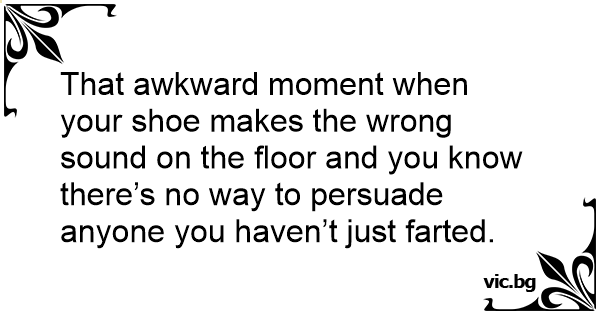 That awkward moment when your shoe makes the wrong sound on the floor and you know there’s no way to persuade anyone you haven’t just farted.