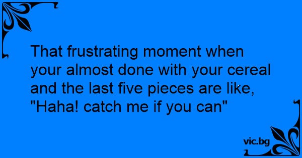 That frustrating moment when your almost done with your cereal and the last five pieces are like, "Haha! catch me if you can"