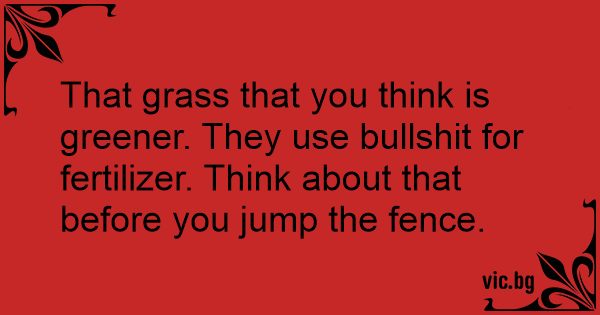 That grass that you think is greener. They use вullshiт for fertilizer. Think about that before you jump the fence.