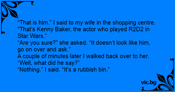 “That is him.” I said to my wife in the shopping centre. “That’s Kenny Baker, the actor who played R2D2 in Star Wars.”