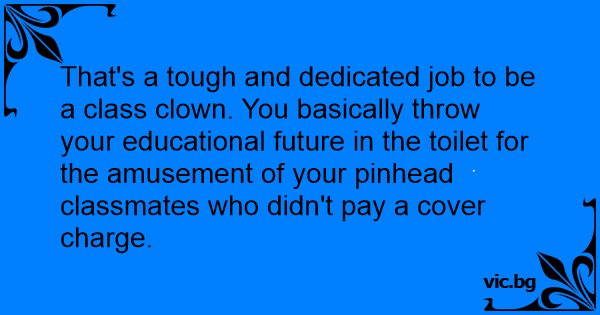 That's a tough and dedicated job to be a class clown. You basically throw your educational future in the toilet for the amusement of your pinhead classmates who didn't pay a cover charge.