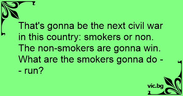 That's gonna be the next civil war in this country: smokers or non. The non-smokers are gonna win. What are the smokers gonna do -- run?