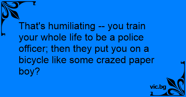 That's humiliating -- you train your whole life to be a police officer; then they put you on a bicycle like some crazed paper boy?