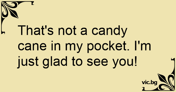 That's not a candy cane in my pocket. I'm just glad to see you!