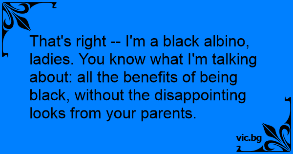 That's right -- I'm a black albino, ladies. You know what I'm talking about: all the benefits of being black, without the disappointing looks from your parents.