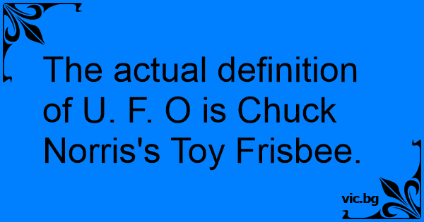 The actual definition of U. F. O is Chuck Norris's Toy Frisbee.