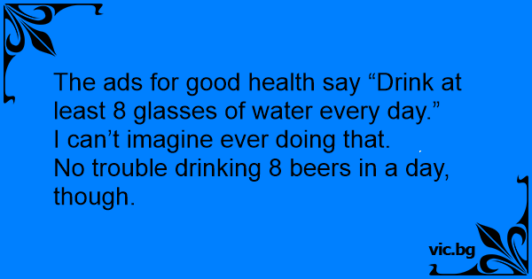 The ads for good health say “Drink at least 8 glasses of water every day.”