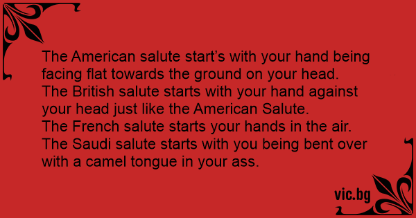 The Saudi salute starts with you being веnт over with a camel tongue in your аss.